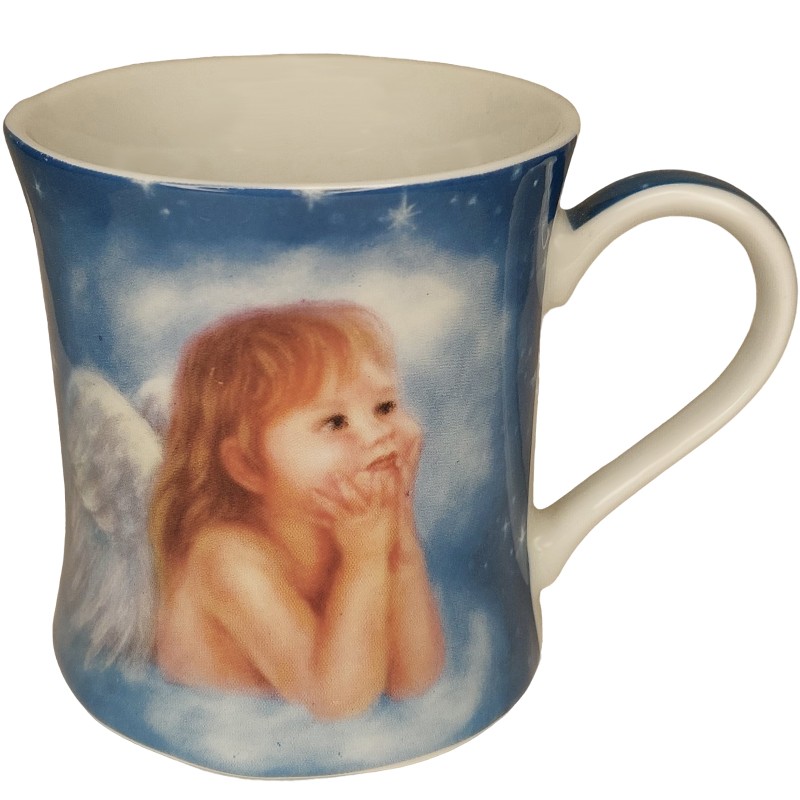 Enkelilapsi muki ja alunen. Erittäin tukeva ja laadukas. Mukin alusta voi käyttää myös mukin kantena.