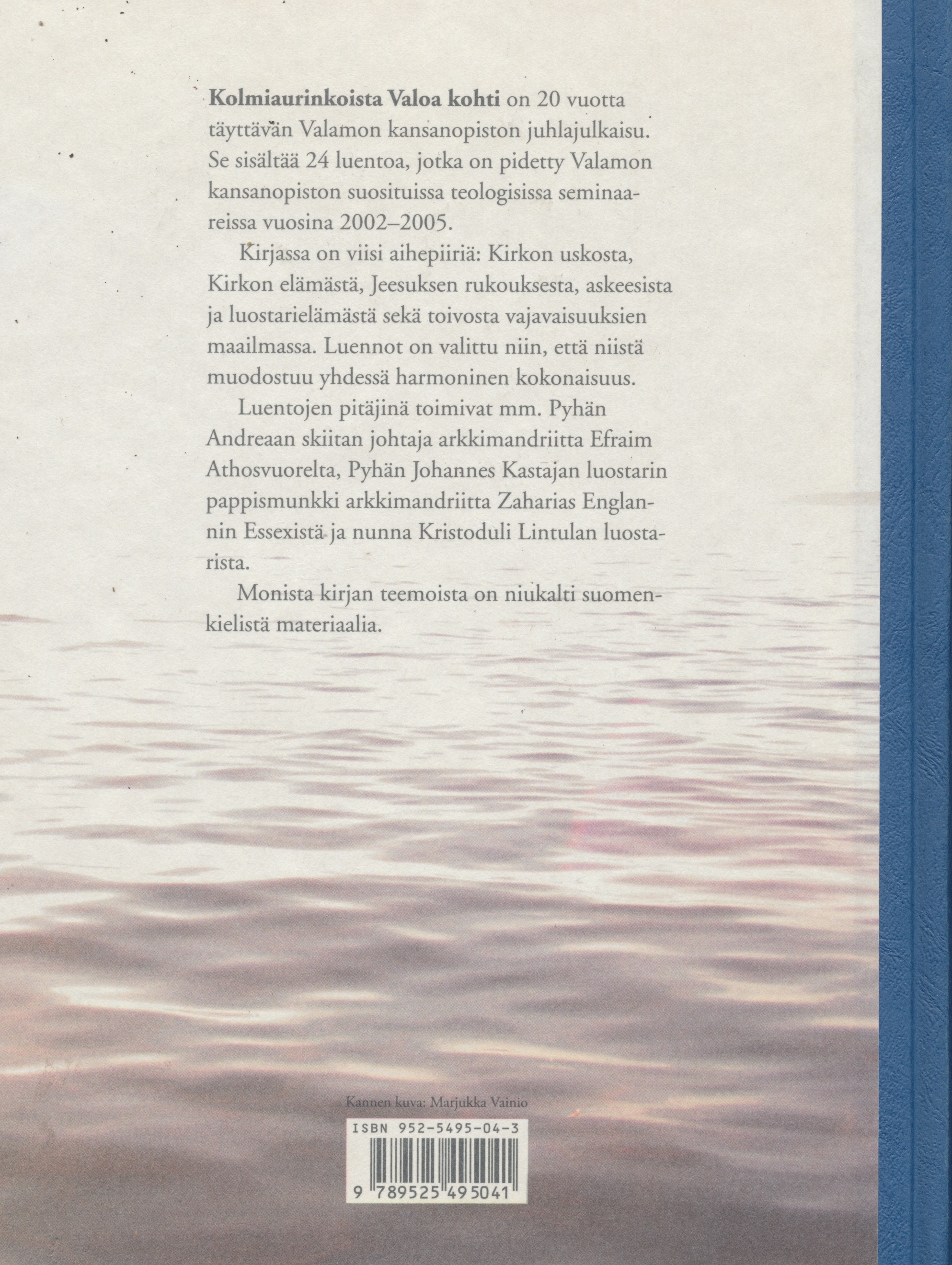 Kirjassa on viisi aihepiiriä: Kirkon uskosta, Kirkon elämästä, Jeesuksen rukouksesta, askeesista ja luostarielämästä sekä toivosta vajavaisuuksien maailmassa. Luennot on valittu niin, että niistä muodostuu yhdessa harmoninen kokonaisuus. Luentojen pitäjinä toimivat mm. Pyhän Andreaan skiitan johtaja arkkimandriitta Efraim Athosvuorelta, Pyhän Johannes Kastajan luostarin pappismunkki arkkimandriitta Zaharias Englannin Essexistä ja nunna Kristoduli Lintulan luostarista. Monista kirjan teemoista on niukalti suomenkielistä materiaalia. Sisältää värikuvia.