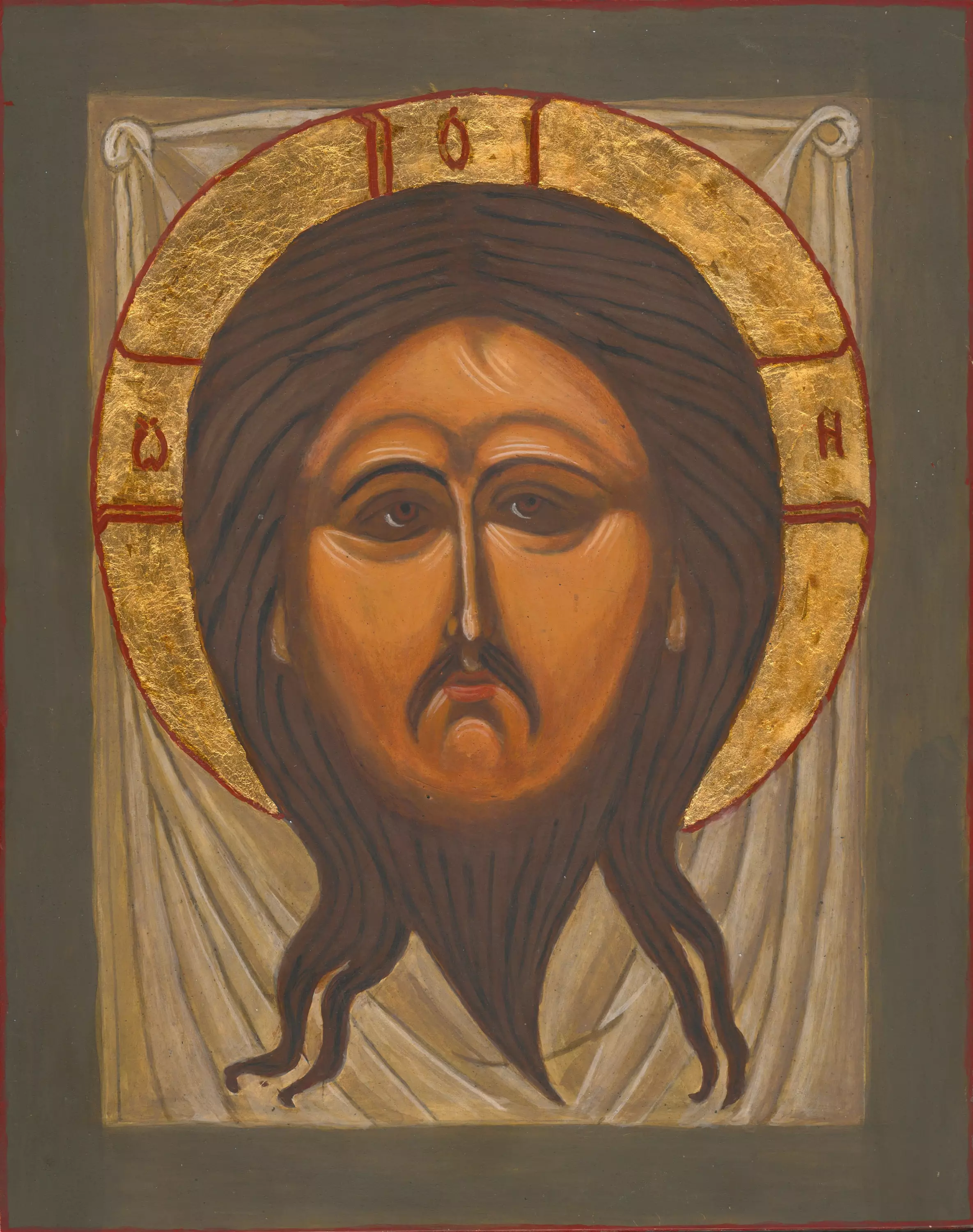 Kristus käsittätehty. Muistopäivä 16. päivänä elokuuta. Mitat 24x30x3cm. Ikonissa esiintyy Kristuksen kasvot liinaan kuvattuna.