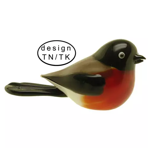 Käsin puhallettu lasinen punatulkku. Tuote toimitetaan lahjapakkauksessa ja se on suomalaista designia.