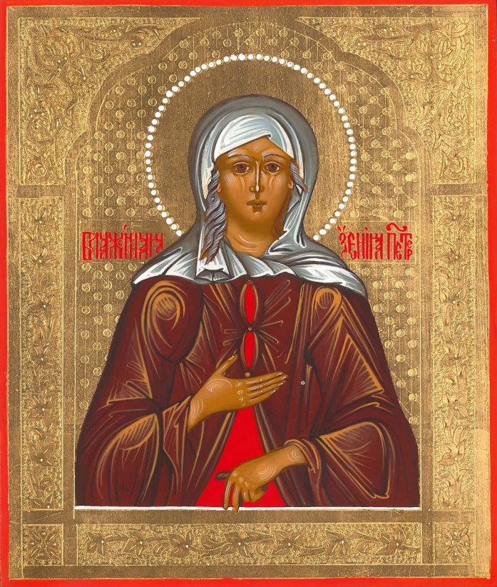 Pyhä Ksenia Pietarilainen (1720-luku - n. 1803, juhla 24.1). Käsin maalattu.