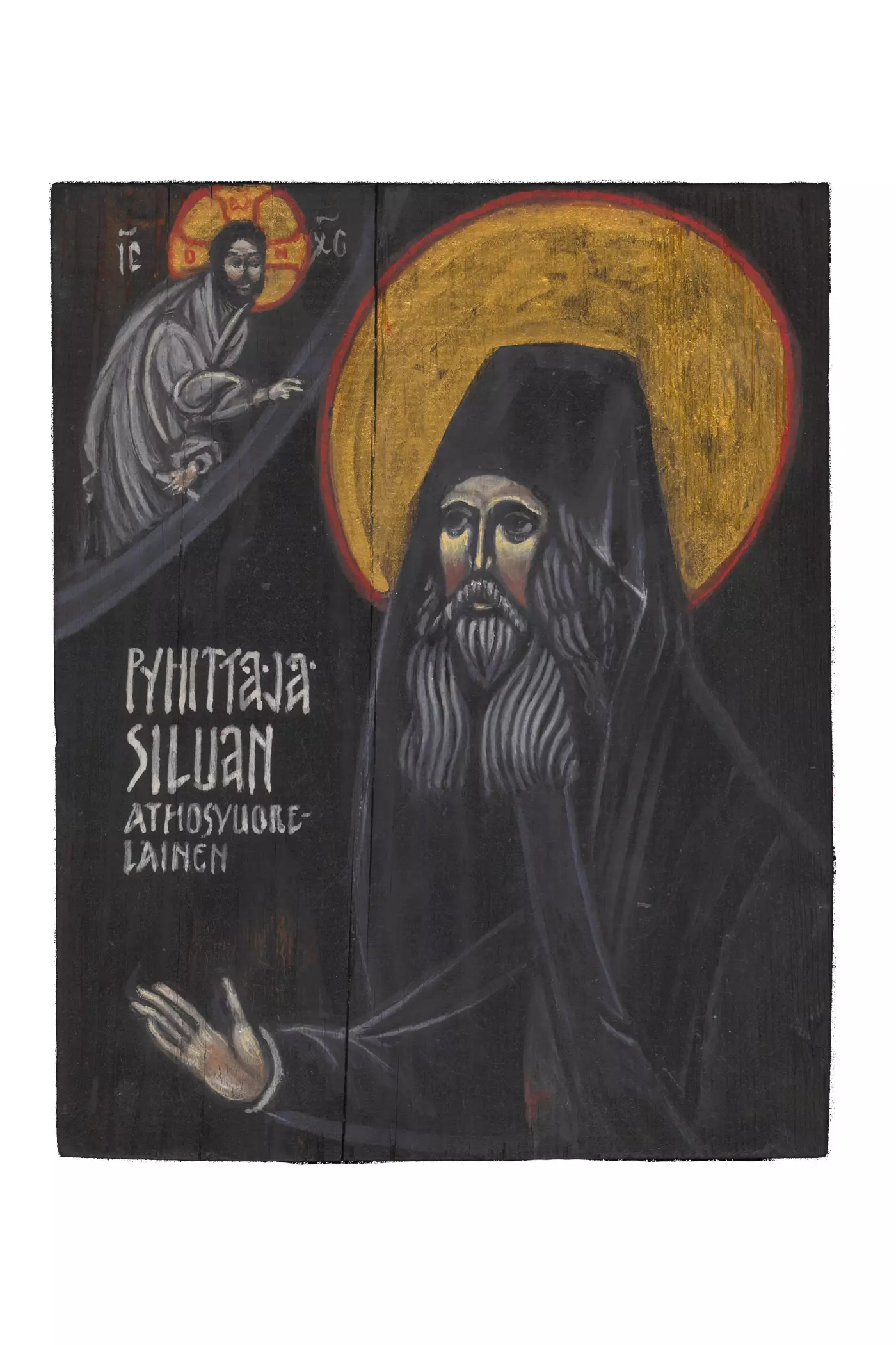 Käsinmaalattu ikoni Pyhittäjä Siluan Athosvuorelaisesta (+ 24.9. vuonna 1938).