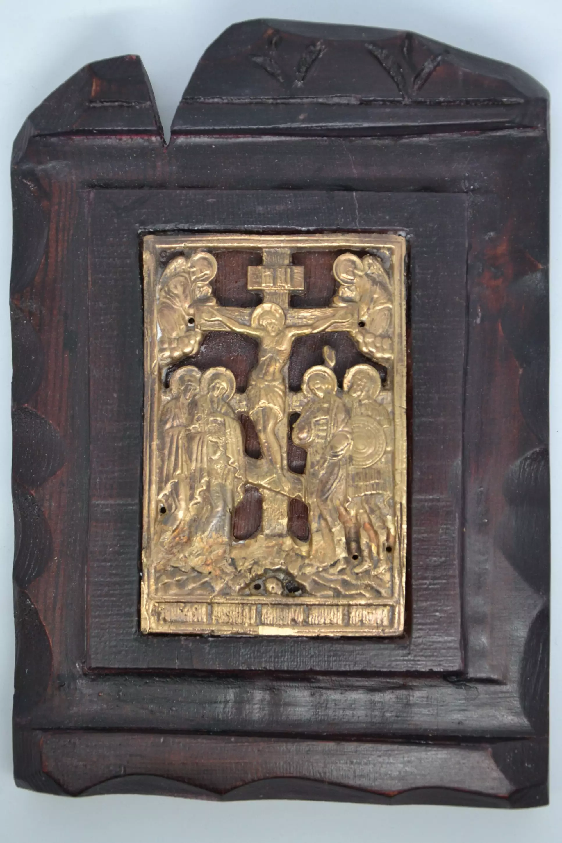 Ristiinnaulittu Kristus kunnian kuningas. Valamon luostarissa prossista valettu metalli-ikoni puupohjaan upotettuna. Kuvattuna Kristus ristiinnaulittuna, marttyyri Longinus Sadanpäämies (16.10), Pyhä apostoli ja evankelista Johannes Teologi (8.5, 30.6 ja 26.9), Jumalansynnyttäjä Neitsyt Maria (8.9, 21.11, 25.3 ja 15.8) ja Pyhä apostolienvertainen, mirhankantaja Magdalan Maria (22.7).