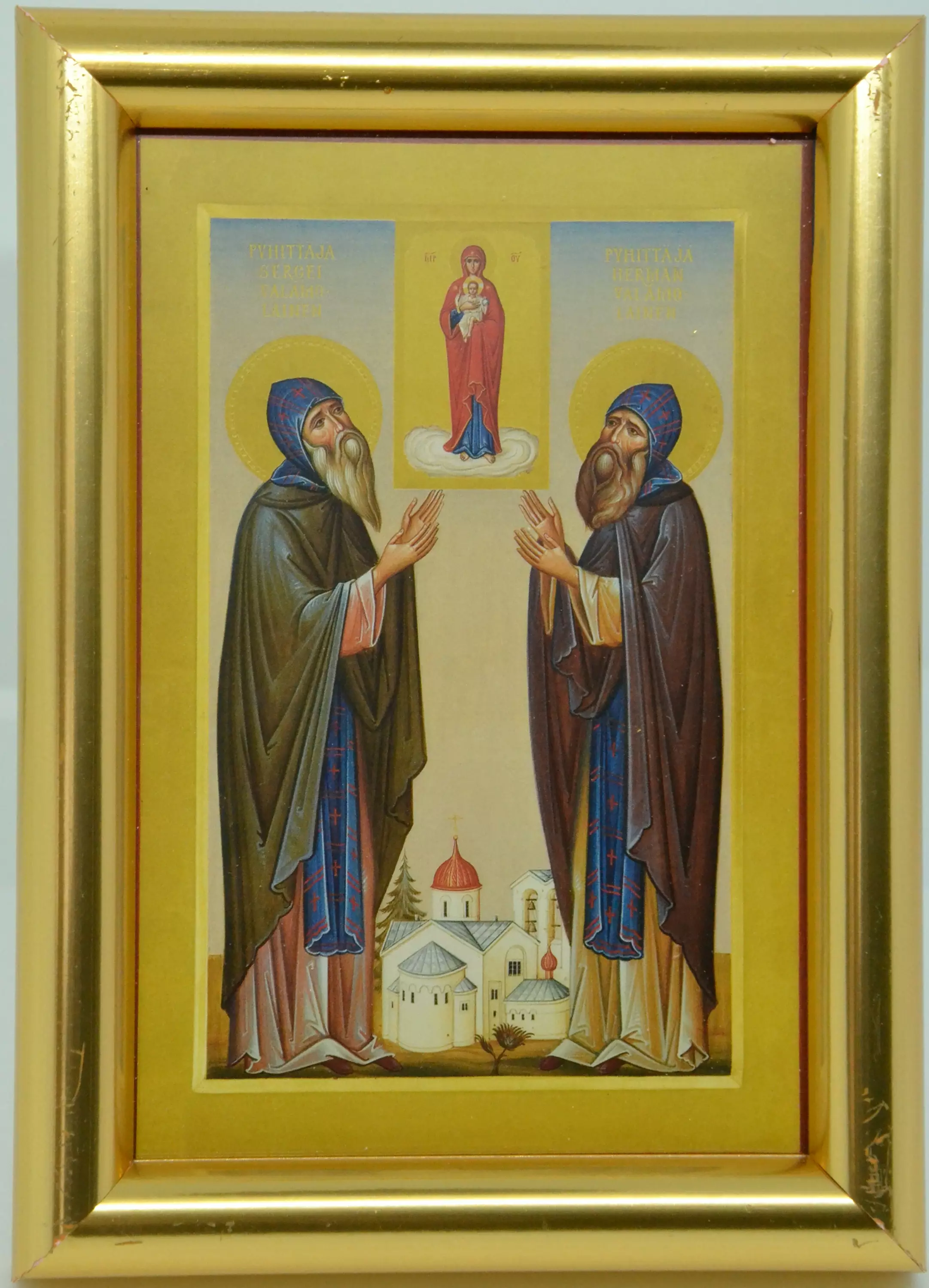 Kehystettu painokuvaikoni, Pyhittäjät Sergei ja Herman