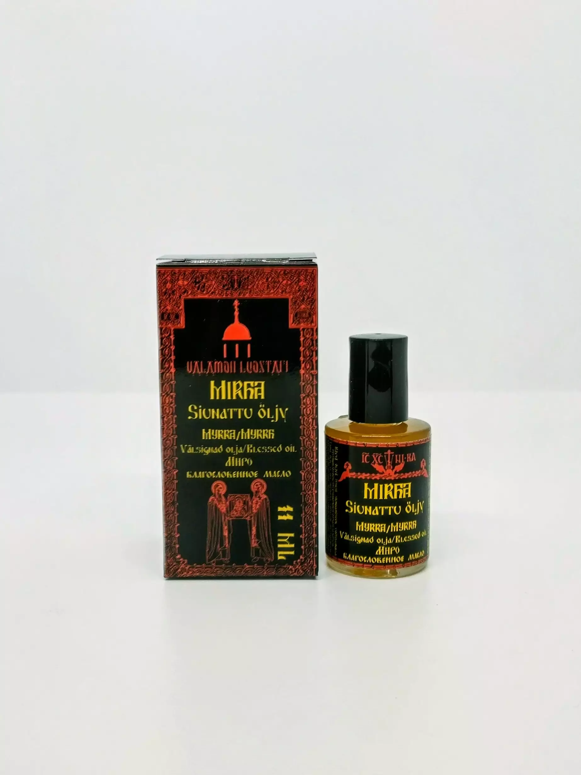 Öljyyn on käytetty Valamon Ihmeitätekevien Jumälansynnyttäjän ikonien lampukoista kerättyä öljyä.