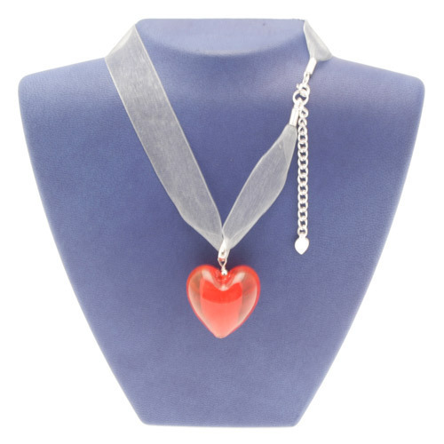Tyylikäs sydämen muotoinen murano-lasista valmistettu riipus, jonka kiinnikkeet ovat hopeaa ja kaulanauha silkkiä.